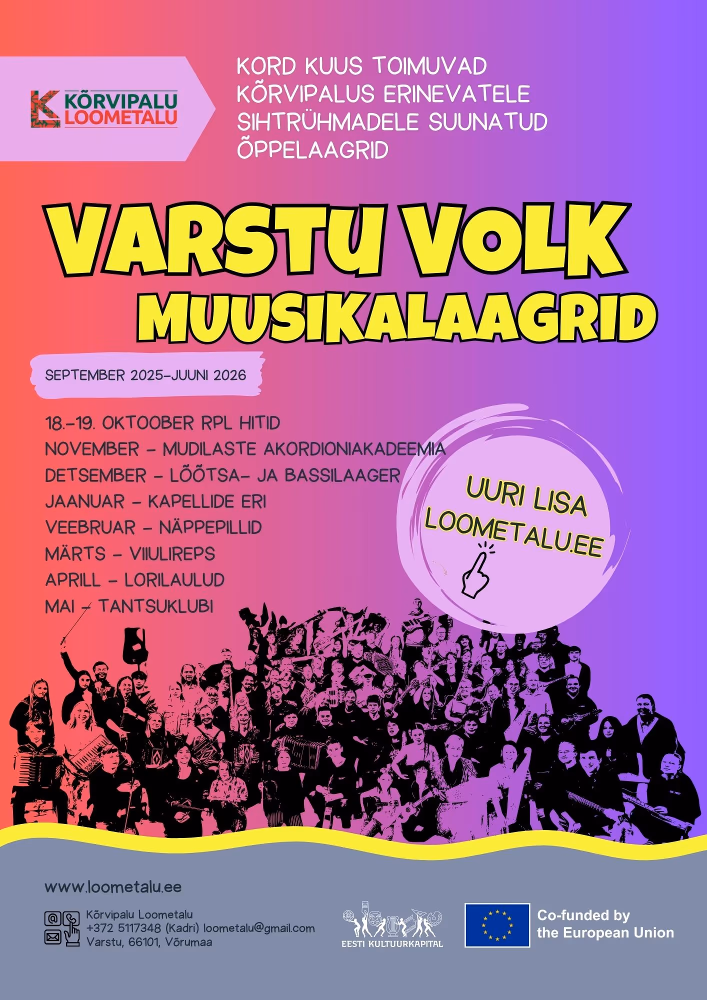 Euroopa Solidaarsuskorpuse toel toimuvad kord kuus erineva temaatikaga muusikaaagrid. Kui esimesed laagrid on nö kinnised, siis teisel poolaastal avame õhtuti uksed ka külalistele. Noortealgatuse ideeks on anda meie noortele võimalus olla nii korraldaja, eestvedaja kui ka juhendaja. Toeks on kogenud õpetajad ja mentorid. Igas laagris saab osaleda olenevalt teemast kuni 20 osalejat. Õppelaagrid on osalejatele tasuta!